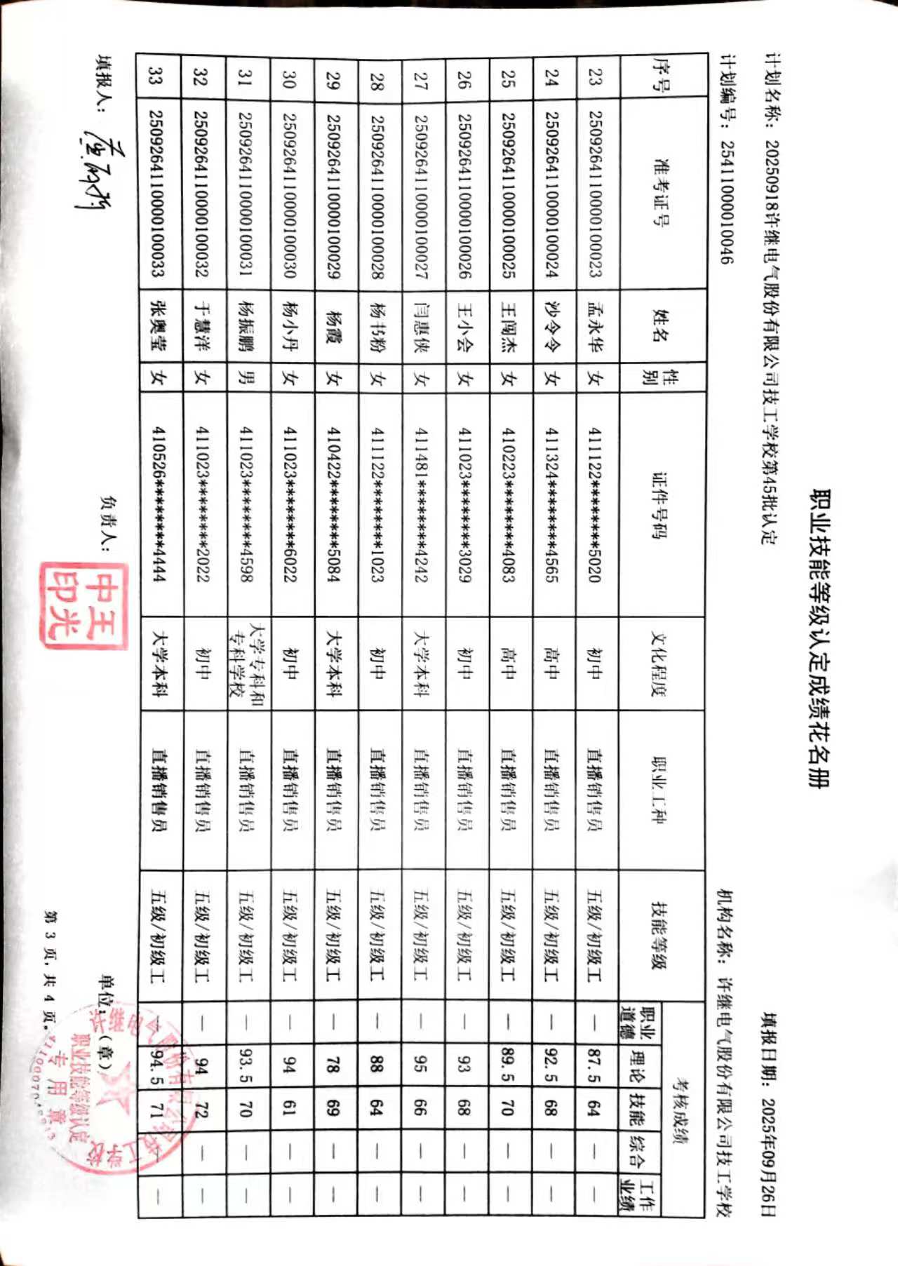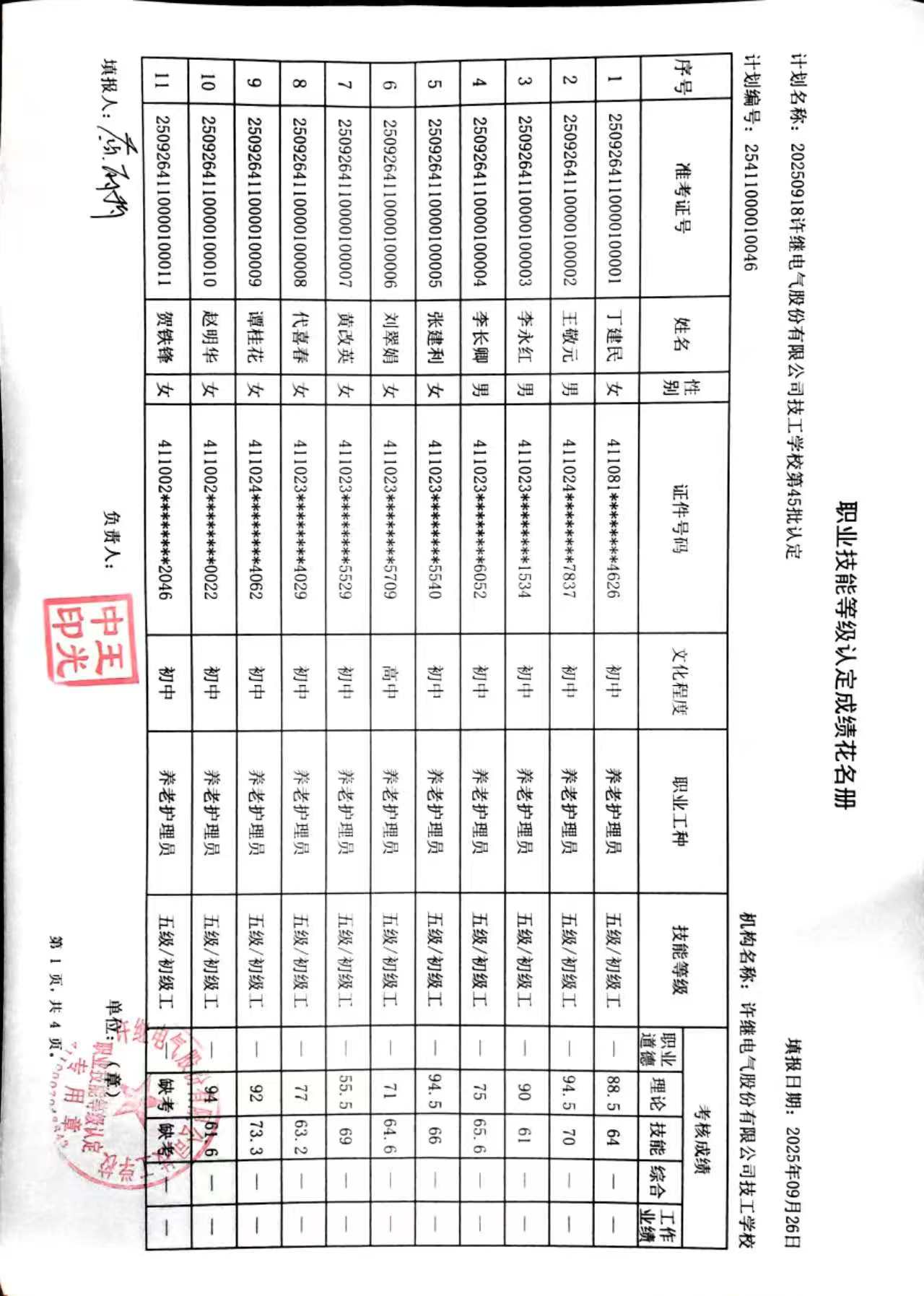 许继技工学校2025年第45批社会化职业技能等级认定成绩公示
