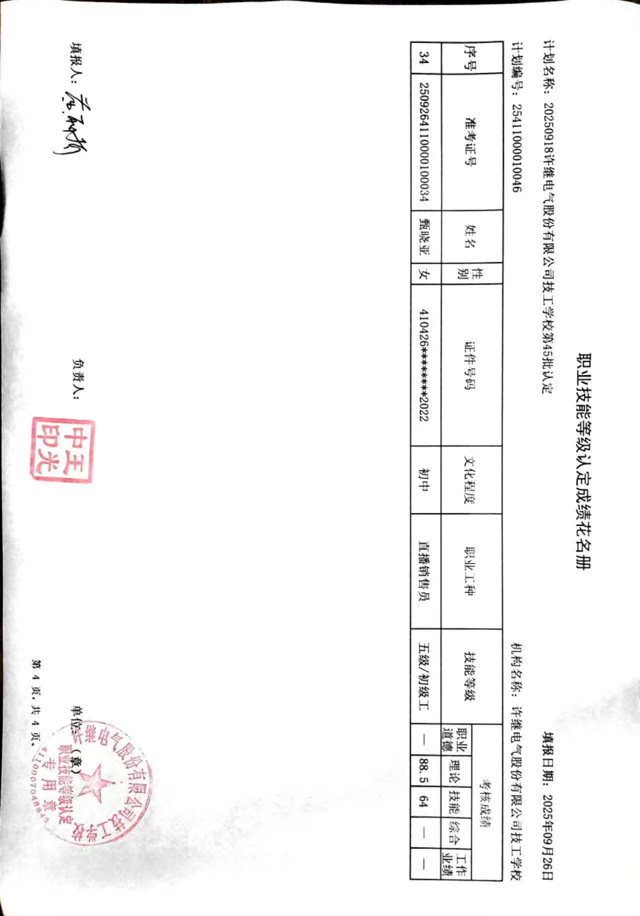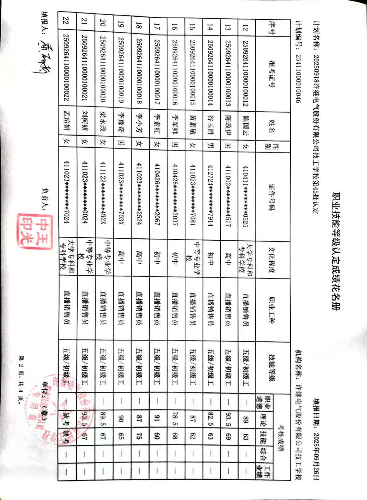 根据《许继技工学校职业技能等级认定工作流程》的文件要求,为确保职业技能等级认定的公平公正,现面向社会对我校2025年第45批社会化职业技能等级认定成绩进行公示,公示期:9月26日——10月2日。