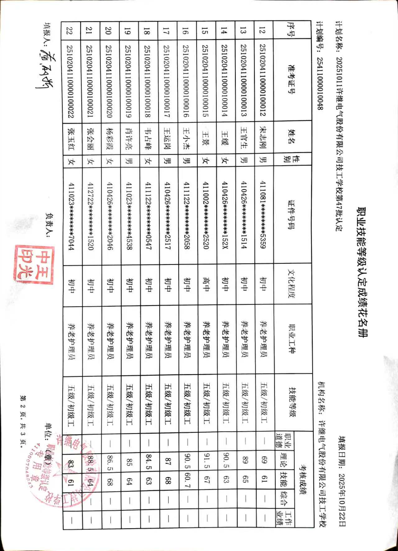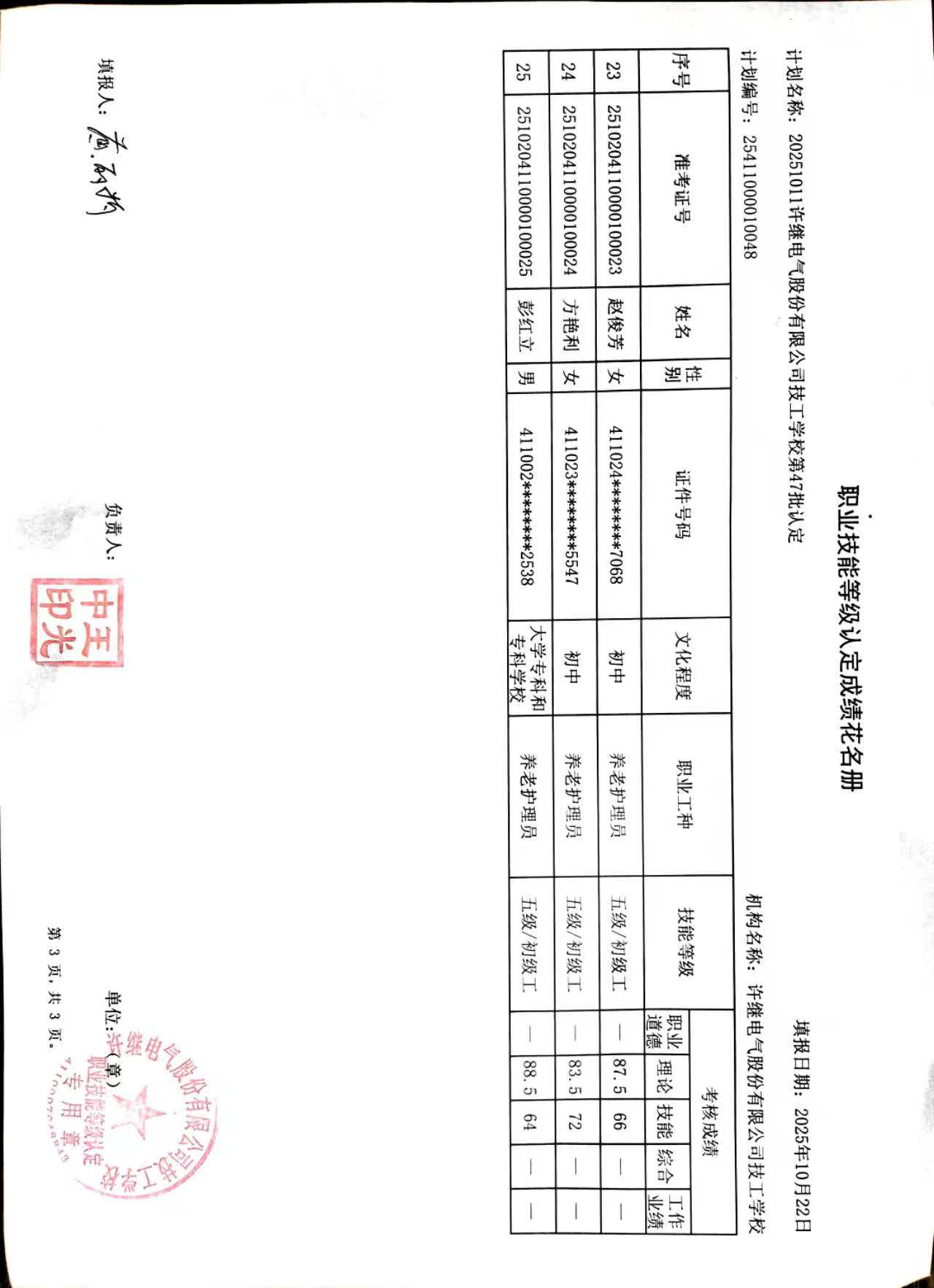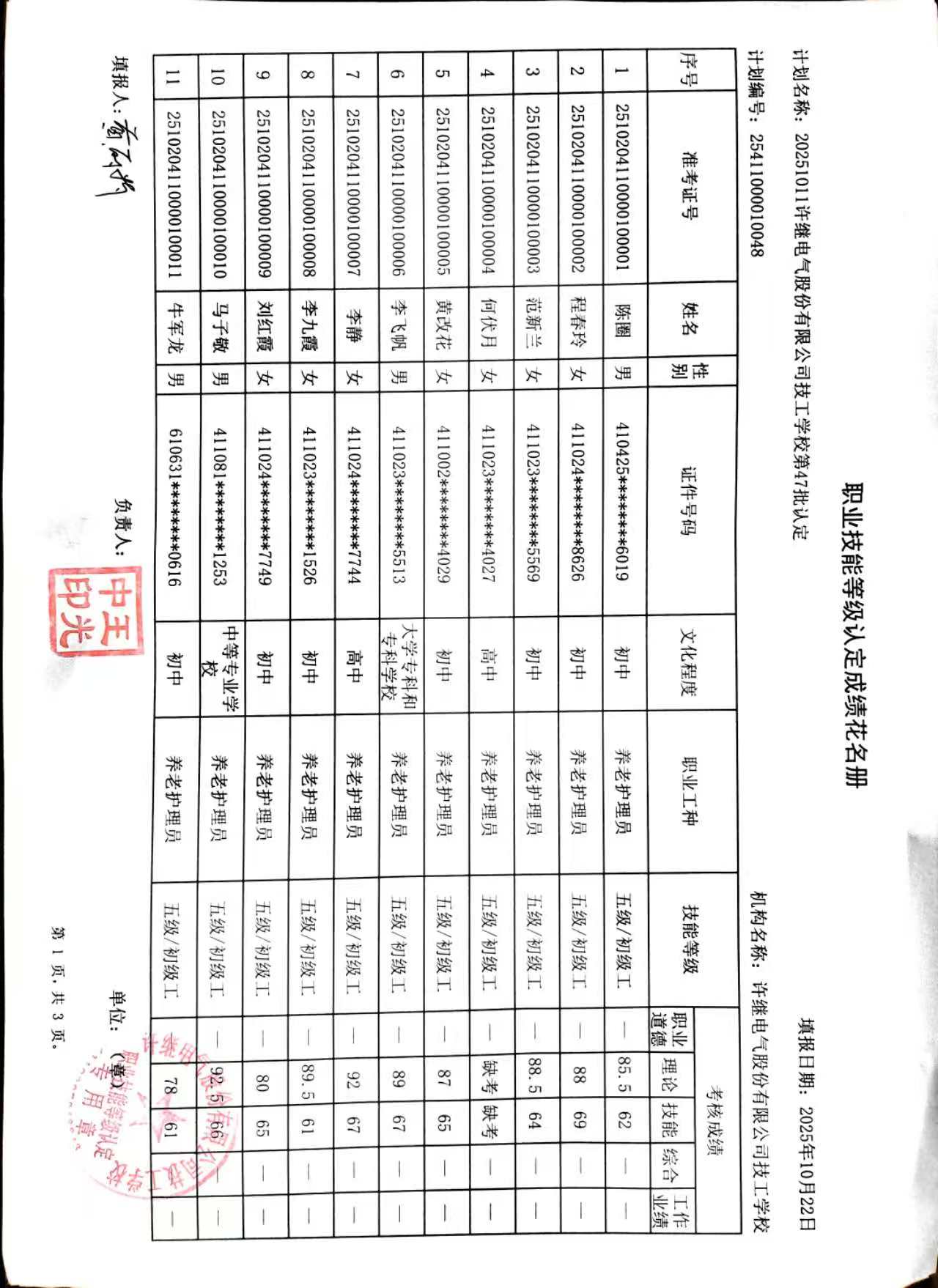 许继技工学校2025年第47批社会化职业技能等级认定成绩公示