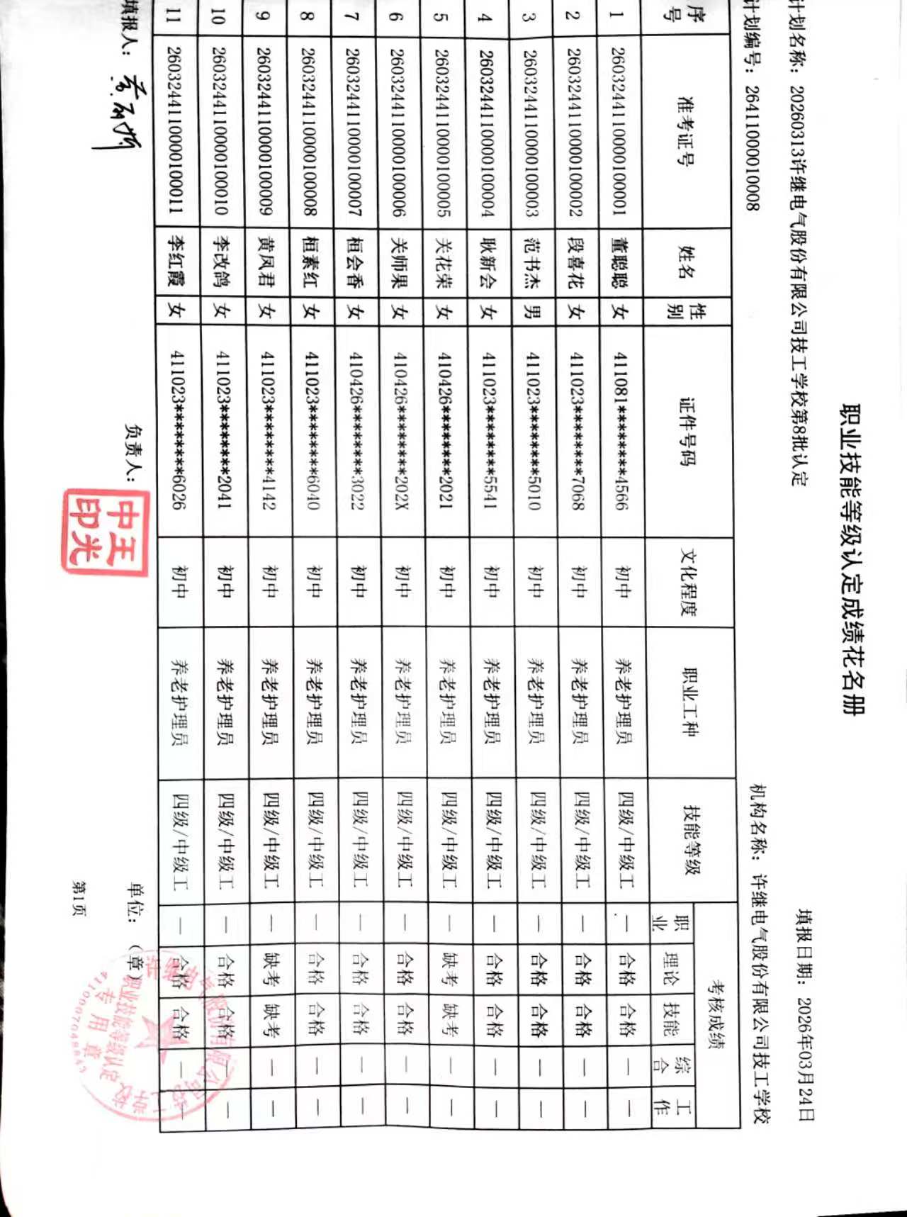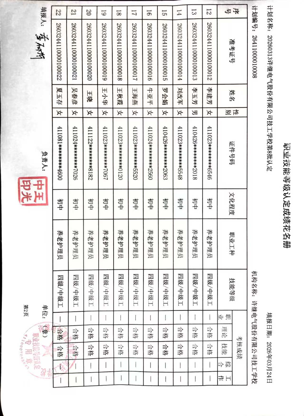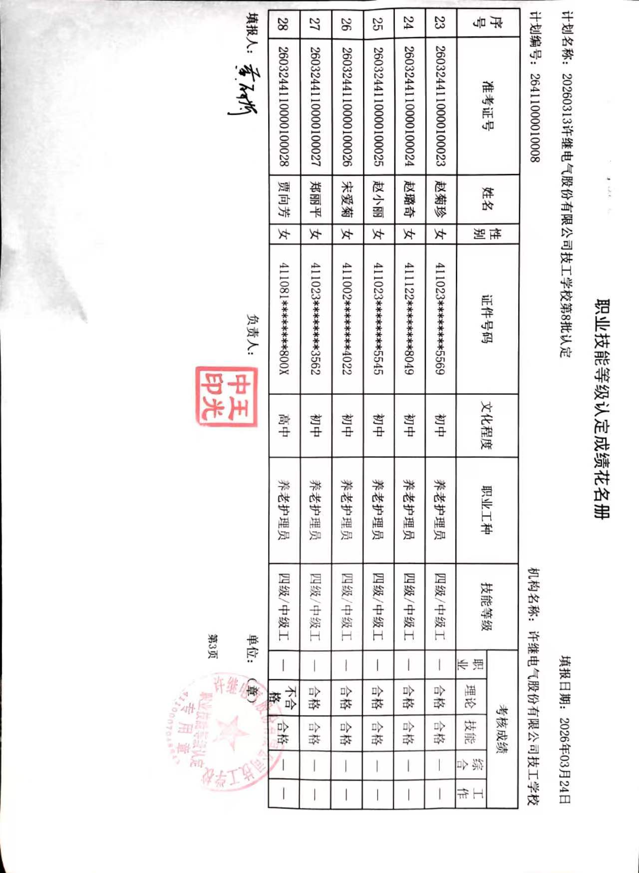 许继技工学校2026年第8批社会化职业技能等级认定成绩公示